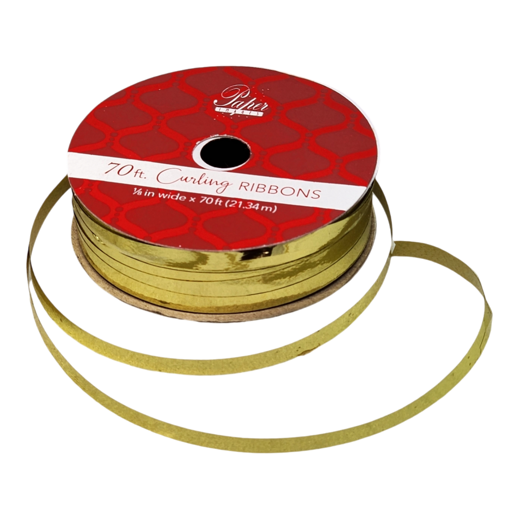 Enhance the sparkle of your celebrations with our luxurious 70-foot Curling Ribbon! Bathed in a gleaming gold hue, this ribbon adds a touch of opulence to any gift or decor. Perfect for the holidays, birthdays, or any occasion that calls for a little extra glamour, this curling ribbon transforms ordinary packages into dazzling displays. Its ⅛-inch width makes it ideal for crafting intricate bows and effortlessly curly flourishes.