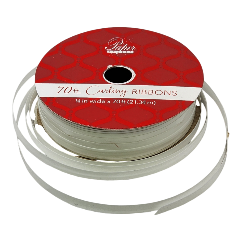 Bring a touch of elegance to your gift wrapping with our 70-foot Curling Ribbon in pristine white. Perfect for any occasion, this versatile and stylish ribbon transforms ordinary presents into stunning displays of thoughtfulness. Whether you're preparing for a wedding, a baby shower, or the holiday season, the classic white hue lends a sense of purity and sophistication to your gifts. At ⅛ inch wide, this ribbon is ideal for crafting delicate bows, intricate curls, and personalized decorations that will leave a lasting impression.