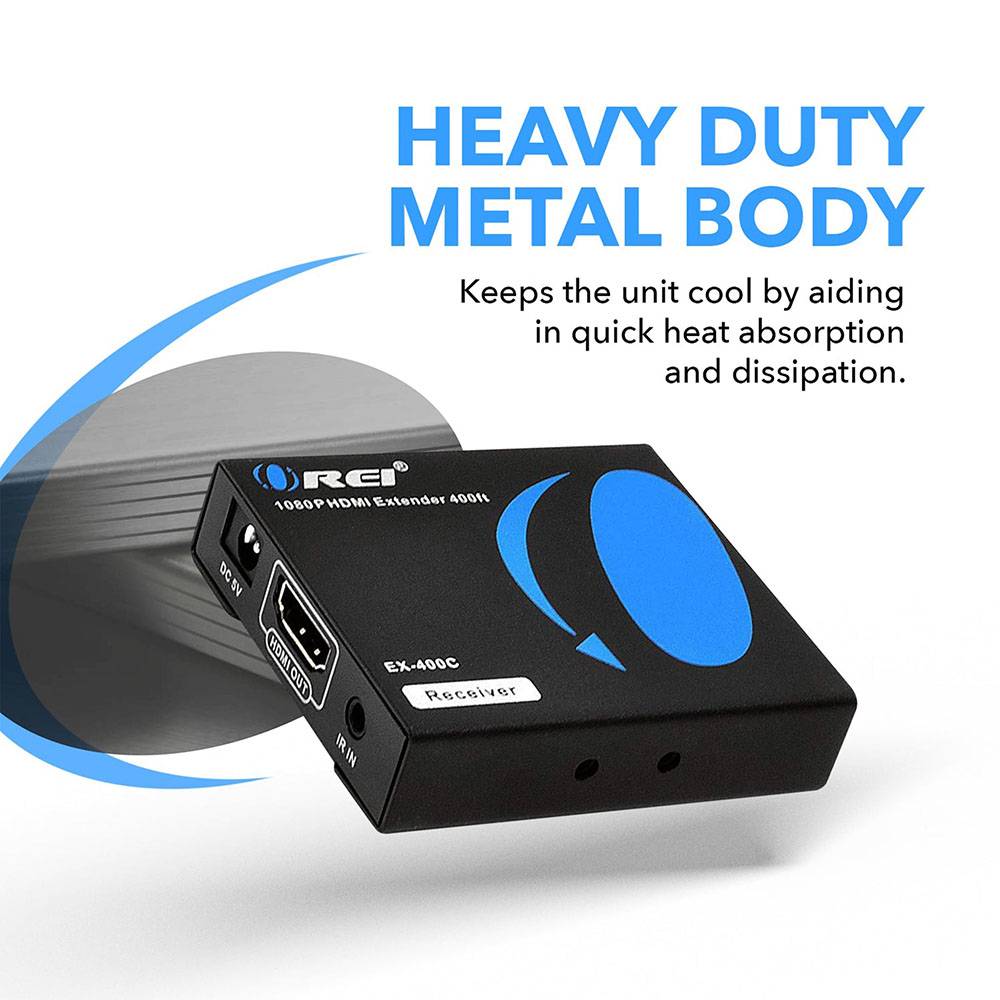 Extend Full HD upto 1080p 60Hz Signal upto 400 Feet via High quality CAT6/CAT7 Cable or 250 Feet Via Cat5e Cable