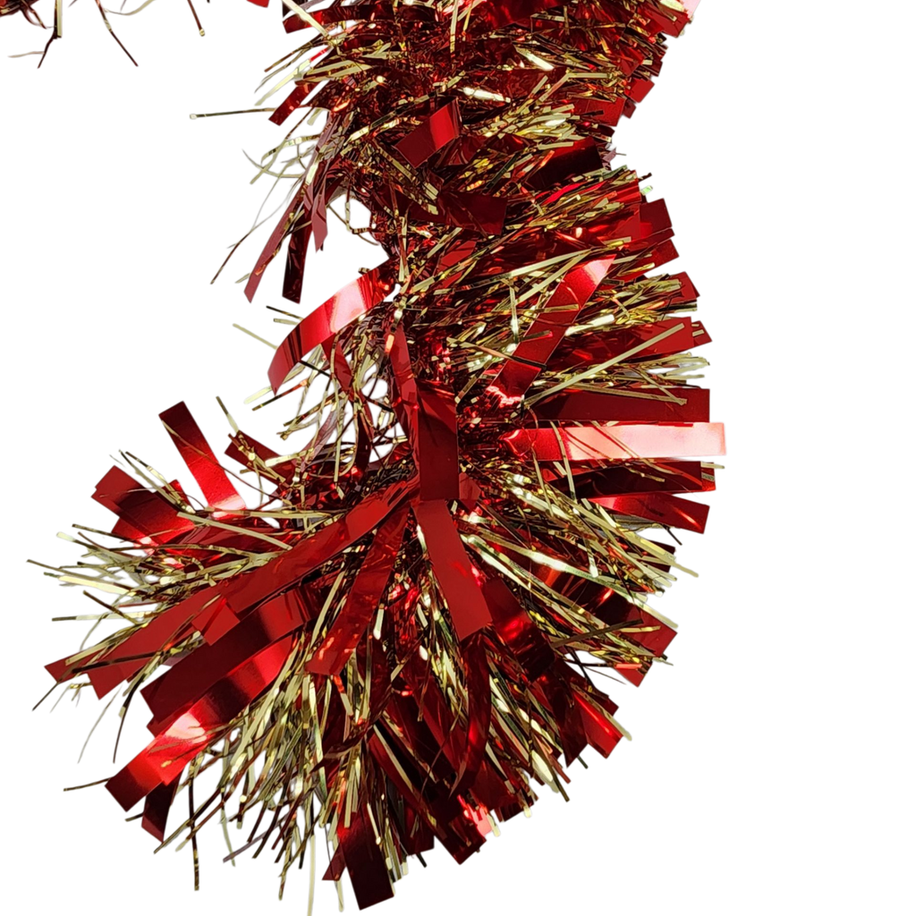 Infuse your holiday decor with a glamorous touch using our Festive Red and Gold Foil Garland! Measuring a generous 12 feet long and about 5.5 inches wide, this stunning garland features a lush six-ply design that delivers both volume and vibrancy. With a clever combination of standard and wide strip cuts on every strand, it creates a visually captivating look. The bright reflective foil in festive red and shimmering gold embodies the spirit of celebration, evoking feelings of joy and warmth — perfect for any holiday gathering!