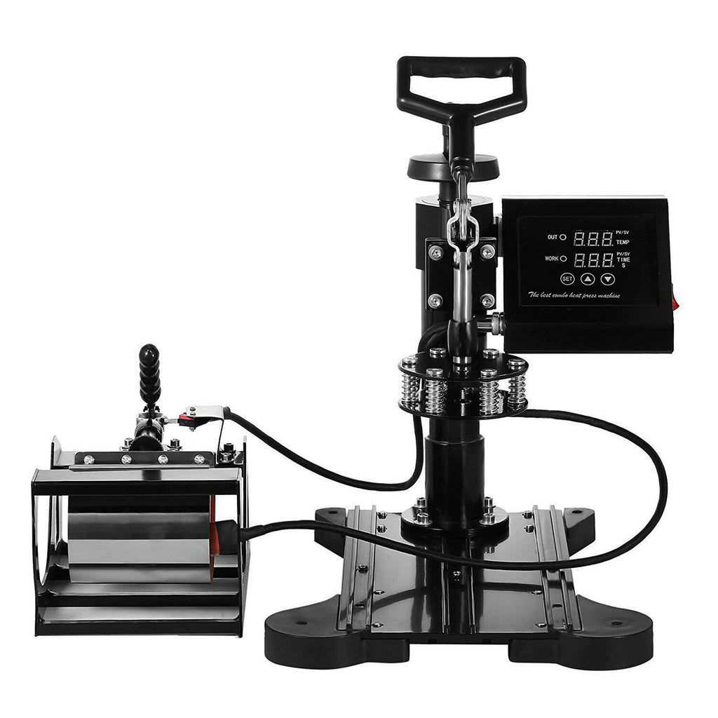 This 8 in 1 heat press machine can be used for T-shirts, caps, ceramic plates, ceramic tiles, mugs, coasters, mouse pads, jigsaw puzzles, lettering, other misc, fabrics & materials. It can transfer colorful pictures and characters of sublimating and dissolved printing ink onto ceramics, glasses and textiles such as cotton, flax, chemical fiber, nylon, etc. This all-in-one press includes flat platen, mugs and plates. The swing-away heat press boasts all of the must-have attachments. It has a built-in Teflon coated 15inch x 15inch (38 x 38cm) heat platen with a full range of heating coils to allow for consistency throughout its surface. The digital timer control is adjustable up to 999 seconds. The features a digital temperature gauge ranging from 0 - 250ºC (about 480ºF).