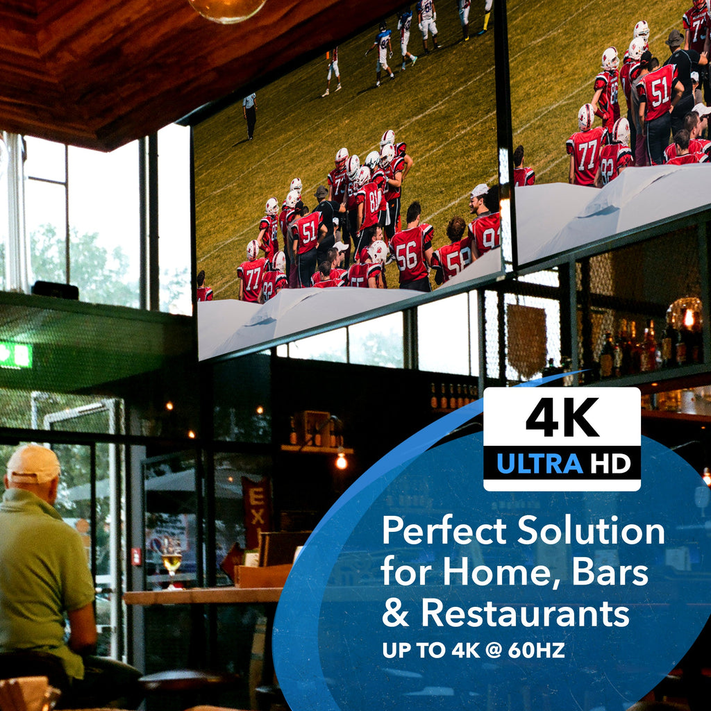 Our HDMI splitter will duplicate or "mirror" a single HDMI source on two HDMI displays. Both displays will show the same video and audio simultaneously