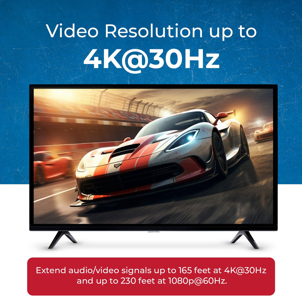 Extend audio/video signals up to 130 feet at 4K@30Hz and up to 230 feet at 1080p@60Hz