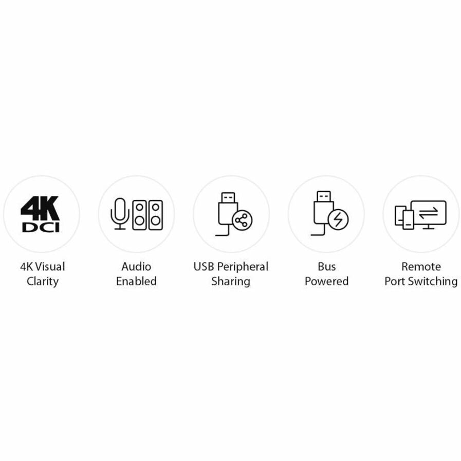 - 2-Port USB 4K HDMI Cable KVM Switch with Remote Port Selector