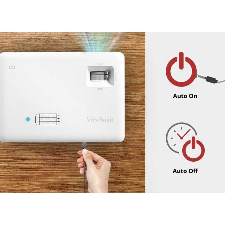 Featuring 1280x800 WXGA resolution and 3,000 LED lumens of brightness, the ViewSonic® LS500WH is a lamp-free LED projector ideal for business and education. No matter the environment, expect stunning images and vivid colors, as this projector boasts 125% Rec. 709 color accuracy. With 2nd generation LED technology, the LS500WH eliminates the need to continuously swap out bulbs and dispose of toxic chemicals. In addition, an IP5X sealed optical engine prevents dust and moisture from entering the projector, ensuring impeccable image quality and a long maintenance-free lifespan of up to 30,000 hours.* An automatic on/off feature delivers efficiency and power savings, while 360° tilt angle projection delivers flexible setup in small- to medium-sized meeting rooms and classrooms. Whether for business or education, the ViewSonic LS500WH LED projector provides a picture-perfect presentation every time. *Lightsource lifespan may vary based on actual usage and other factors.