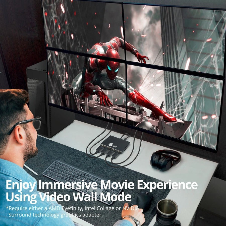 4 Port 8K DisplayPort 1.4 to DisplayPort MST Hub Splitter