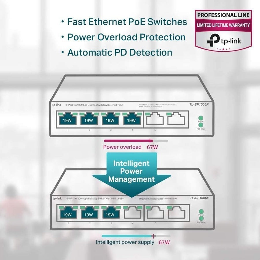 TP-Link TL-SF1006P - 6-Port Fast Ethernet 10/100Mbps PoE Switch - Limited Lifetime Protection