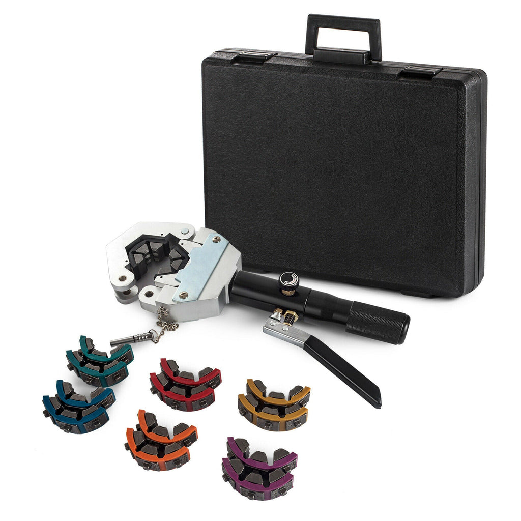 Hydra-Krimp Hose Crimper dies snap quickly into the press fixture, requiring no pins or screws. Kit comes in custom molded case.