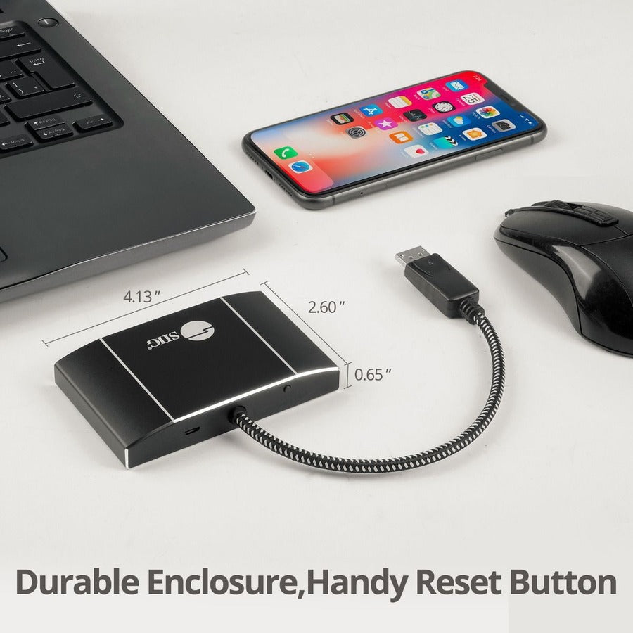- Premium aluminum housing with embedded woven braided DisplayPort cable decreases surrounding interference and provides optimal video quality