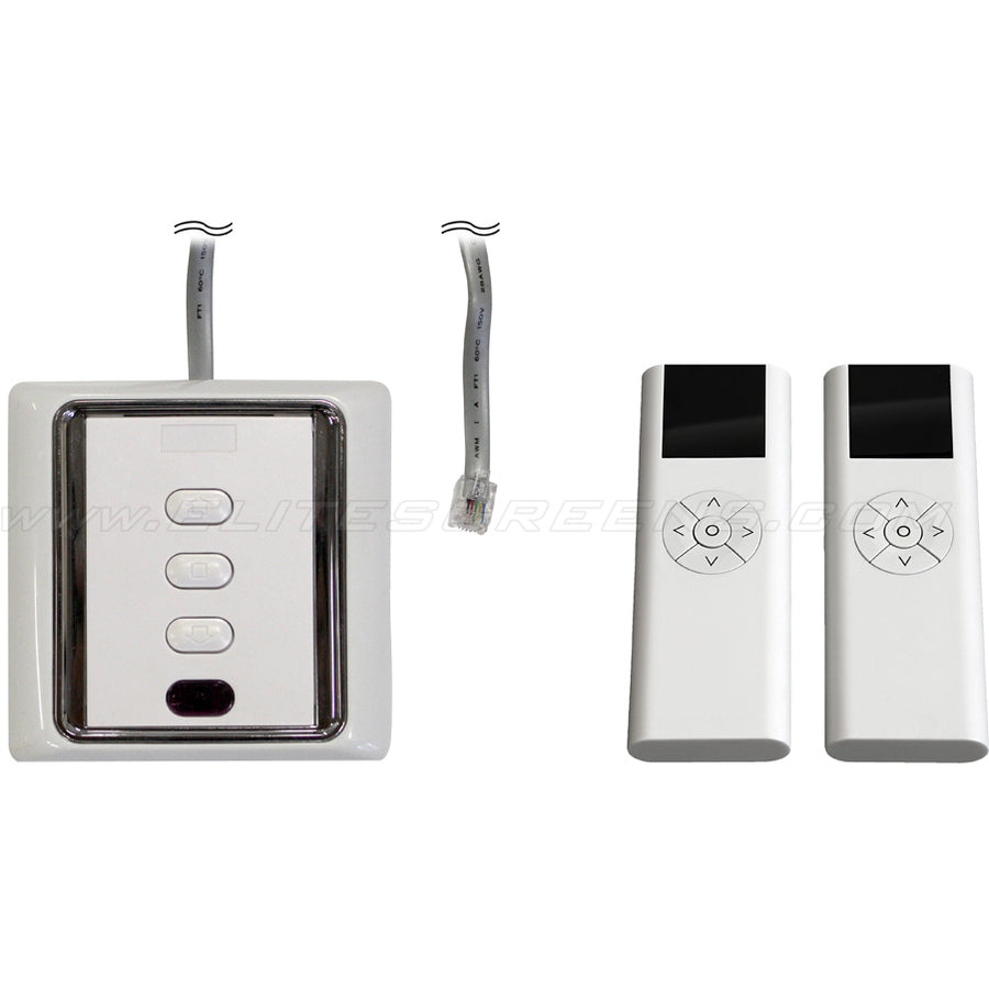 - Includes infrared (IR) and radio frequency (RF) remotes, 3-way wall switch, 5-12 volt trigger capable for synchronized screen operation with the projector's power cycle, brackets, screw, and bubble leveler.