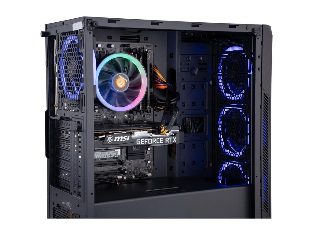A great blend of power and style. The 11th Gen Intel Core i5 processor paired with GeForce RTX 3060 GPU plays the latest AAA titles with ultra smooth 2K visuals, while delivering responsive performance for surfing, streaming and multitasking. A mid tower case is thermally- and aesthetically-optimized with multiple RGB fans that shine through the tempered glass side panel.