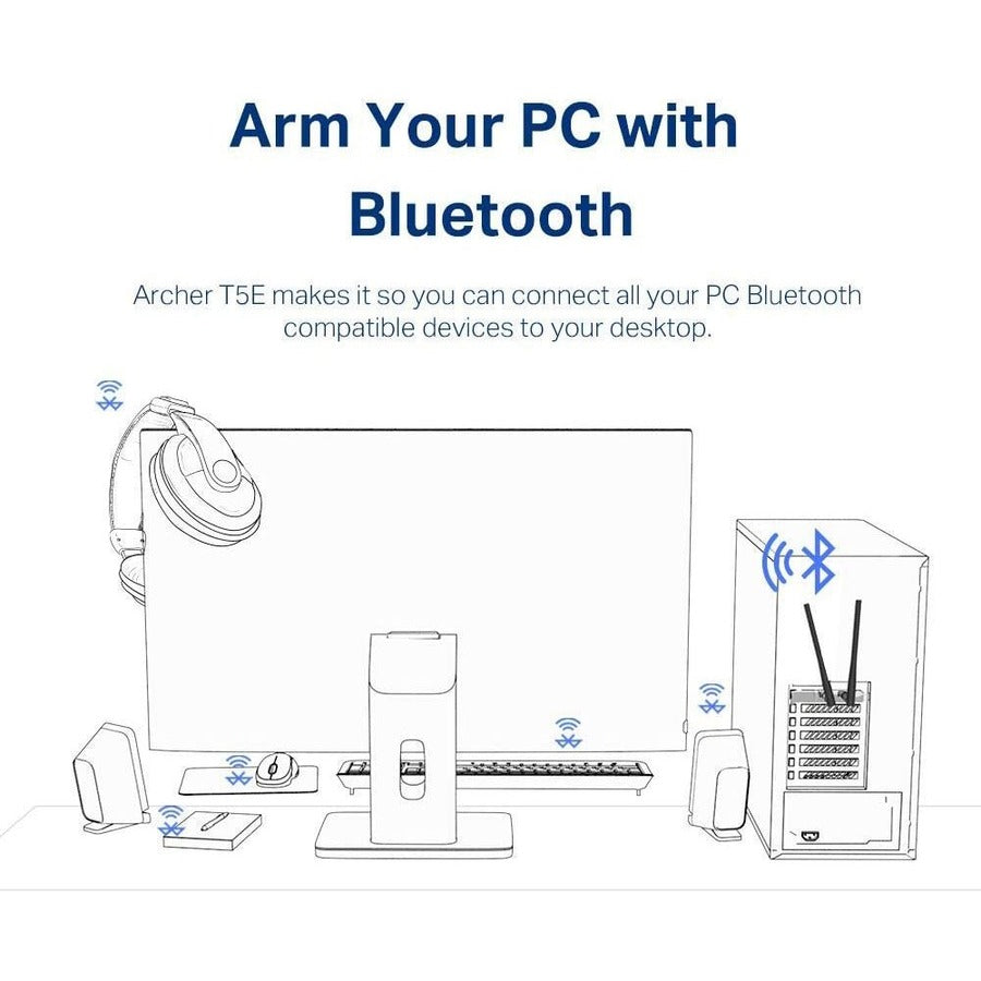 Archer T5E is compatible with advanced Bluetooth 4.2 technology, achieving 2.5 faster speed and 10 more packet capacity than Bluetooth 4.0 to turn non-Bluetooth PCs into Bluetooth-Capable. Just connect your Bluetooth devices to your computer and enjoy.