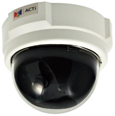 ACTi D51. Type: IP security camera, Placement supported: Indoor, Connectivity technology: Wired. Form factor: Dome, Mounting type: Ceiling/wall, Product colour: White. Minimum illumination: 0.1 lx, Tilt angle range: 0 - 180°, Pan range: 0 - 330°. Sensor type: CMOS, Optical sensor size: 25.4 / 4 mm (1 / 4"), Effective sensor resolution: 1000000 pixels. Maximum resolution: 1280 x 720 pixels, Total megapixels: 1 MP, Video formats supported: H.264,M-JPEG