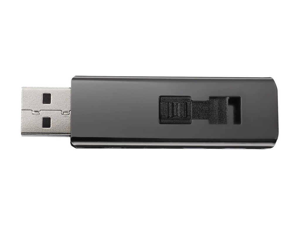 Take your favorite photos, videos and personal files on the go. This USB 2.0 thumb drive is easy to use with a slide-out USB connector, which also eliminates the hassle of losing cap. With a key chain hole, you can attach the drive to a lanyard or key ring for handy portability.