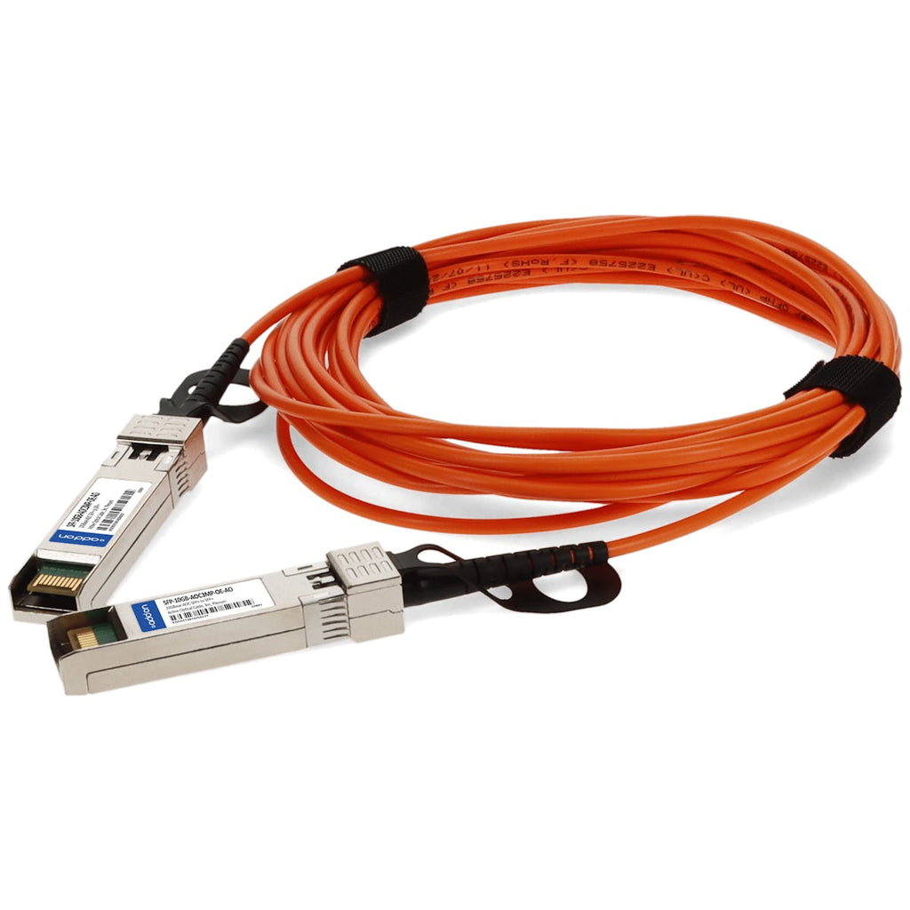 This is an MSA compliant 10GBase-AOC SFP+ to SFP+ plenum-rated active optical cable that operates over multi-mode fiber with a maximum reach of 3.0m (9.8ft). At a wavelength of 850nm, it has been programmed, uniquely serialized, and data-traffic and application tested to ensure it is 100% compliant and functional. This active optical cable is TAA (Trade Agreements Act) compliant, and is built to comply with MSA (Multi-Source Agreement) standards. We stand behind the quality of our products and proudly offer a limited lifetime warranty.