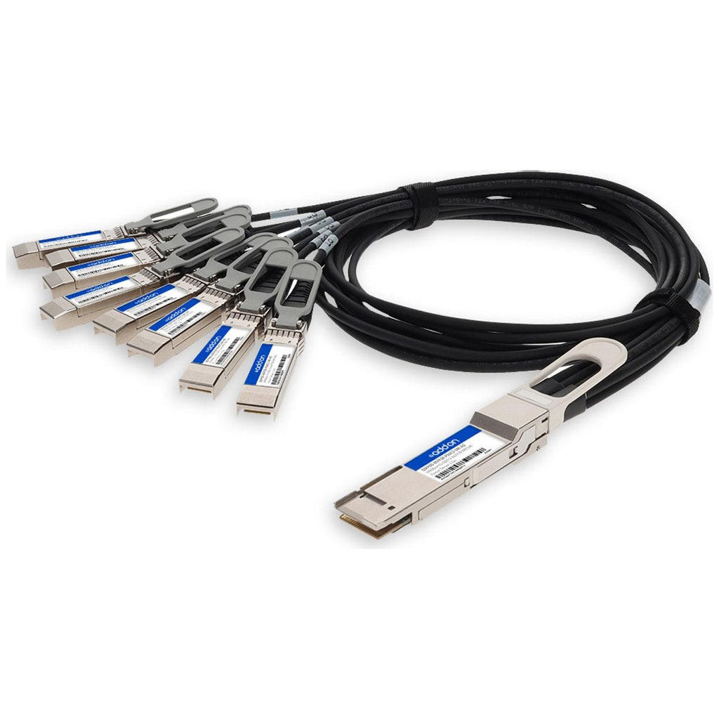 AddOn Networks MSA and TAA Compliant 200GBase-CU QSFP-DD 200G to 8xSFP28 Direct Attach Cable (Passive Twinax, 2.5m). Cable length: 2.5 m, Connector 1: QSFP-DD, Connector 2: 8xSFP56. Package width: 304.8 mm, Package depth: 228.6 mm, Package height: 38.1 mm