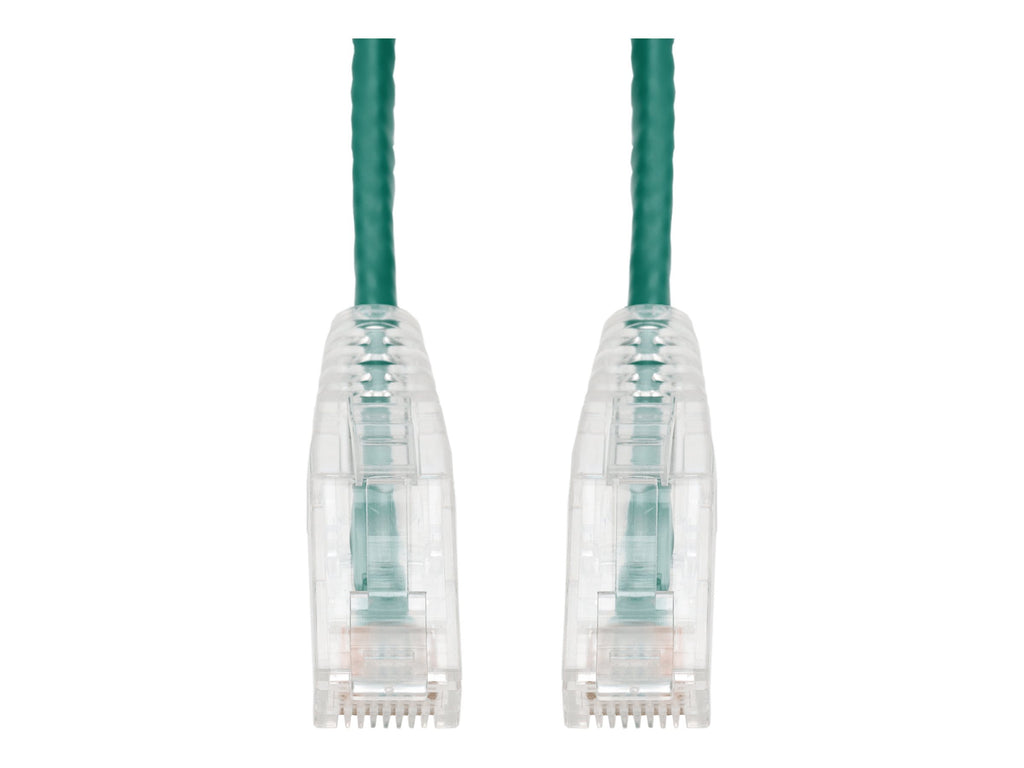 This is a 2ft Green CAT 6 Slim PVC Ethernet Cable Snagless Clear-Claw RJ-45 M/M. CAT6 cables deliver ultra-fast internet speeds at up to 250 MHz, with a maximum speed of 10 Gbps (Gigabits per second) over shorter distances (up to 55 meters or 180 feet) and 1 Gbps over longer distances (up to 100 meters or 328 feet). They are ideal for high-performance home or office networks. UTP cables consist of pairs of insulated copper wires twisted together. Each pair is color-coded for easy identification. There is no additional shielding around the pairs, which makes these cables lightweight and flexible. The twisting helps to reduce electromagnetic interference (EMI) and crosstalk between pairs. PVC-CM is ideal for everyday home use, these cables offer reliable performance at an affordable price, perfect for connecting devices within a single floor. Our cables are PoE capable and TIA compliant, ensuring performance for all networking needs.