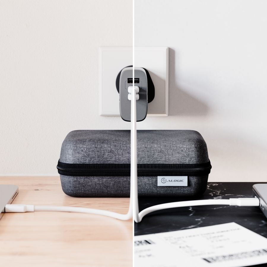 The ALOGIC Rapid Power USB-C Charger incorporates GaN Gallium Nitride a next-generation semiconductor that replaces silicon & enables very high energy & power in a very small compact & portable size. The 67W GaN charger lets you charge any 2 USB-C & USB-A equipped devices such as laptop tablets & phon