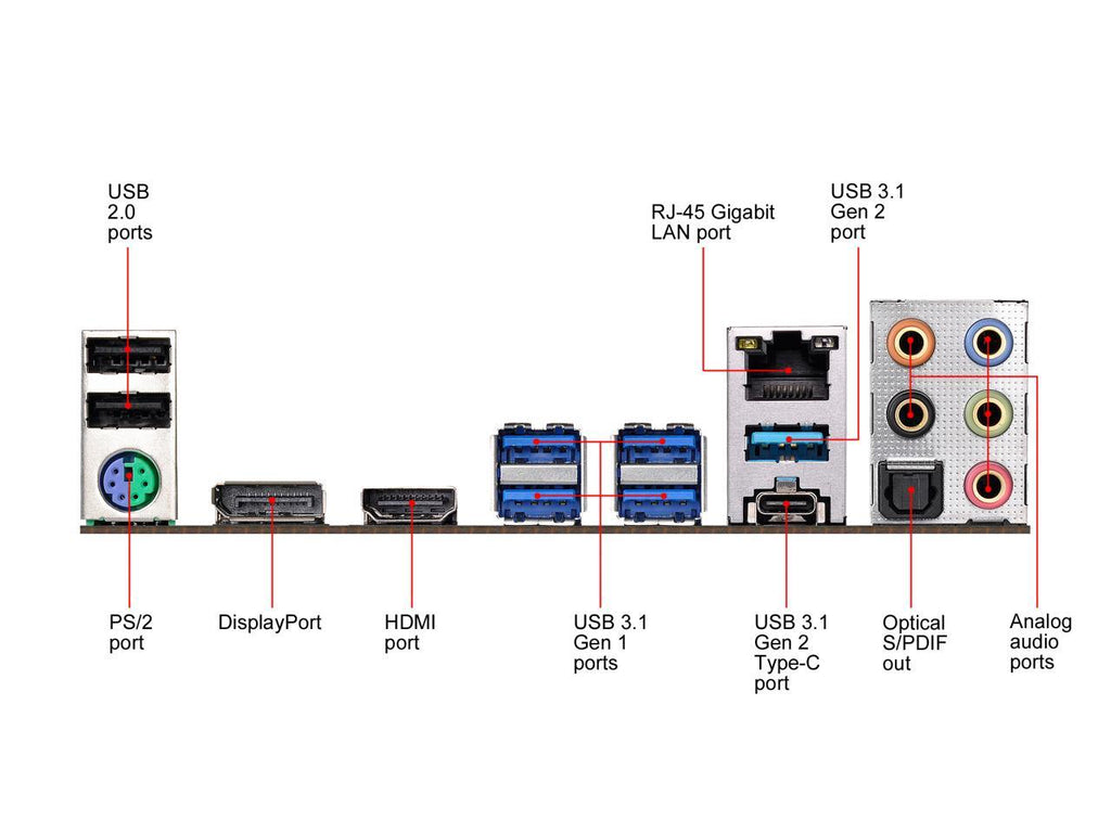 This motherboard has a pair of onboard Type-A and Type-C USB 3.1 Gen2 ports built on the rear I/O to support next-generation USB 3.1 Gen2 devices while delivering up to 10 Gbps data-transfer rates.