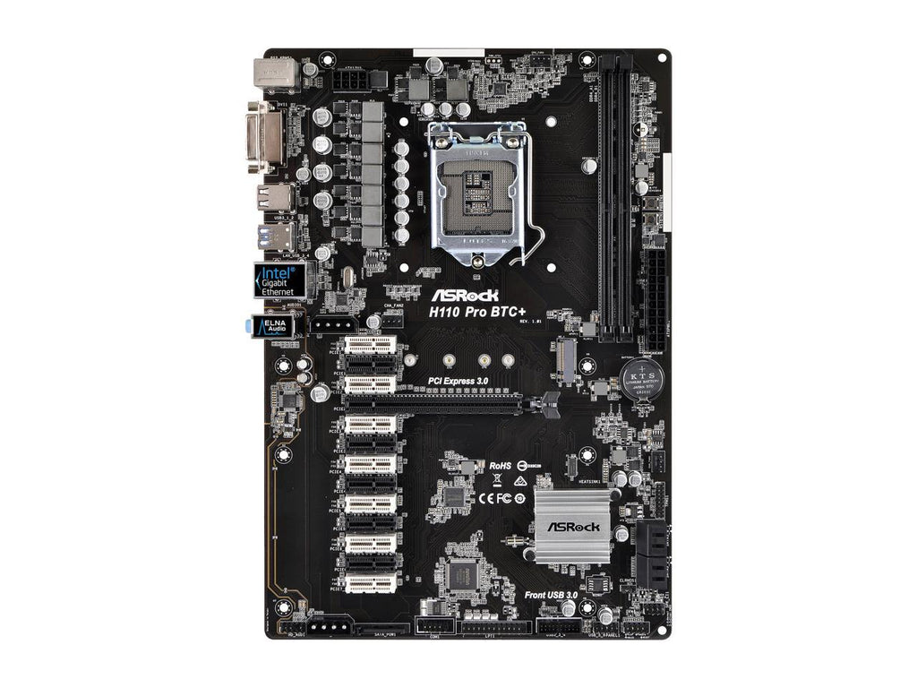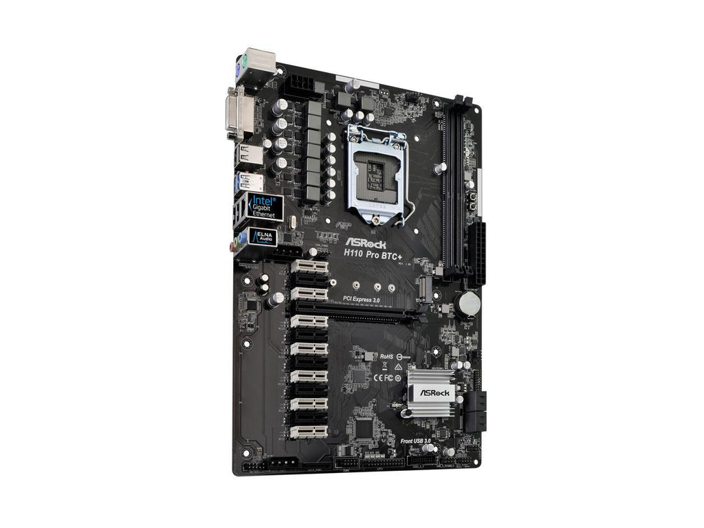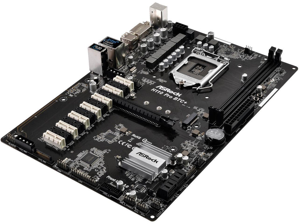 Equipped with one PCIe 3.0 x16 and 12 PCIe 2.0 x1 slots, the H110 Pro BTC+ motherboard supports up to 13 GPU mining*, great for fast GPU mining. Miners can mix and match AMD and NVIDIA GPUs under Windows 10. The motherboard is also compatible with professional mining operating system such as SimplMining OS & ethos. It is able to mine Ethereum, Zcash, Monero, and other GPU-minable coins.