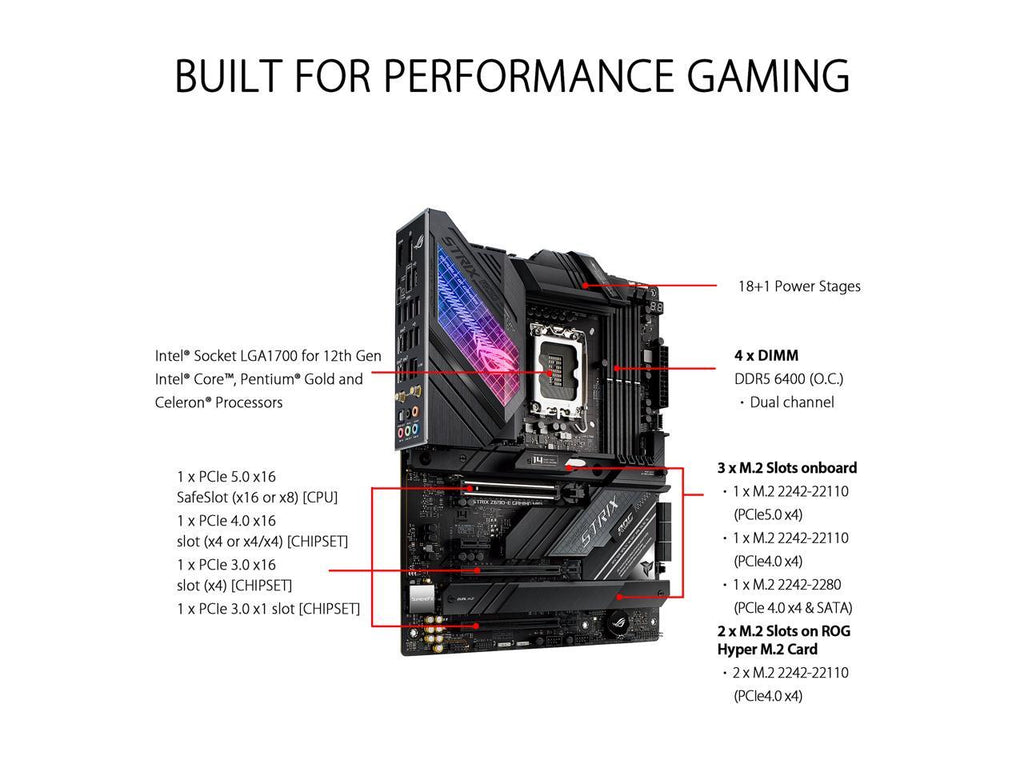 - Best Gaming Connectivity: Supports HDMI 2.0 and DisplayPort 1.4 output, and support up to 5 x M.2 slots, 1 x PCIe 5.0 M.2 , bundled with ROG Hyper M.2 card and USB 3.2 Gen 2x2 Type-C and Front panel USB 3.2 Gen 2x2 Type-C connectors