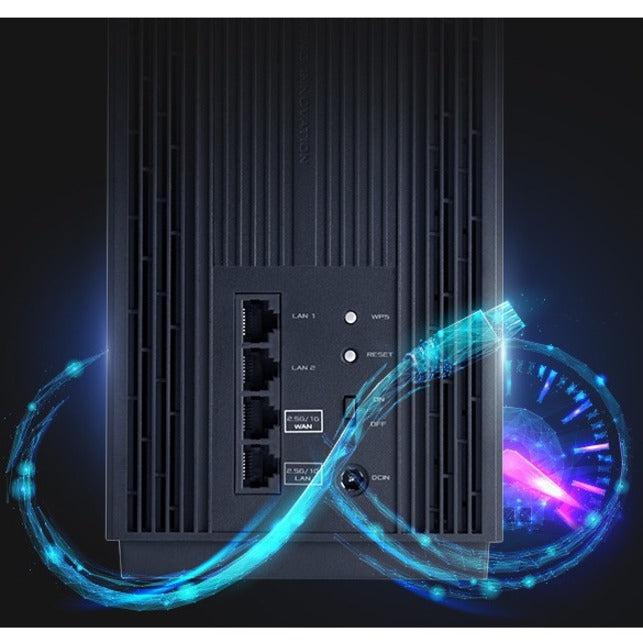 Asus ZenWiFi Pro ET12 Wi-Fi 6E IEEE 802.11ax Ethernet Wireless Router - Tri Band - 2.40 GHz ISM Band - 6 GHz UNII Band - 10 x Antenna(10 x Internal) - 1.34 GB/s Wireless Speed - 3 x Network Port - 1 x Broadband Port - 2.5 Gigabit Ethernet - VPN Supported - Desktop