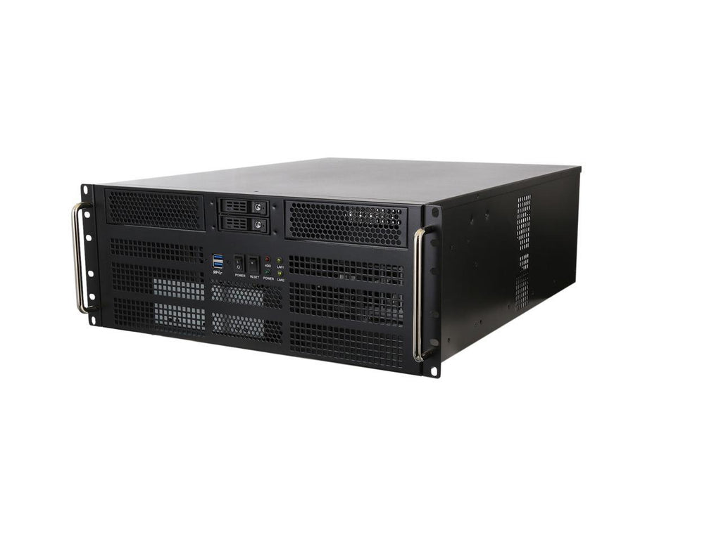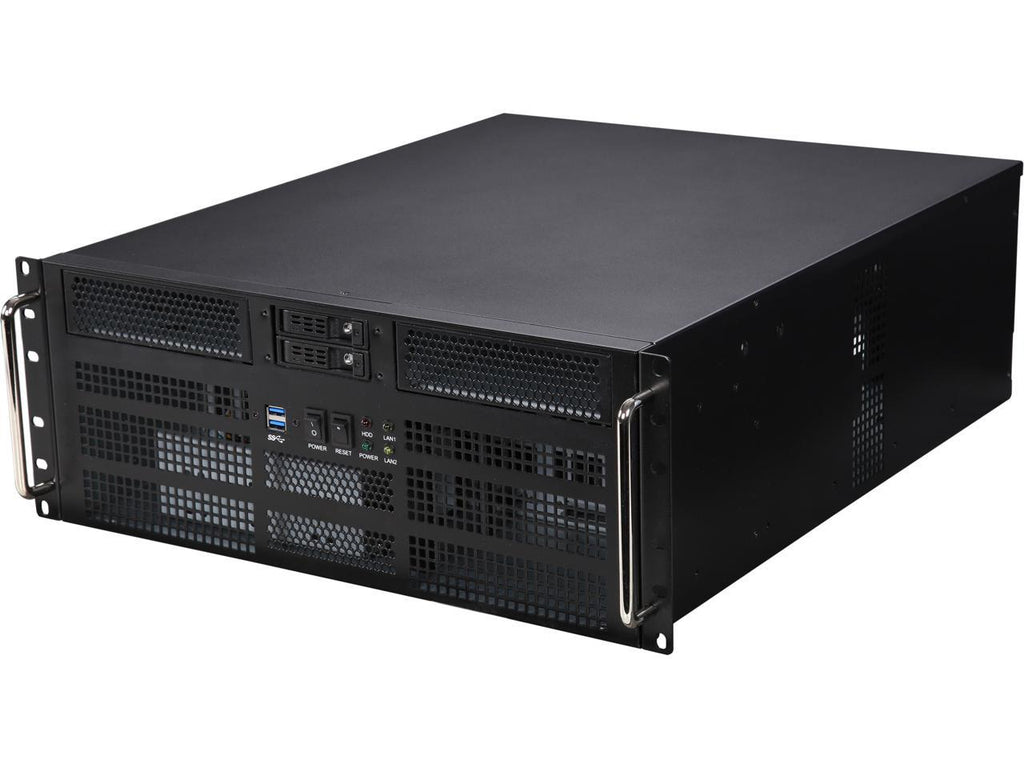 This server case is ideal for industrial PCs and GPU server applications with 8 full-height PCIe slots supporting card length up to 13-inch. Its 4U form factor fits in standard 19-inch rack, and rugged construction with superb material withstands heavy-duty use. Dual handles on the front panel allow easy mobility. This case also features an IPC grade hot-swap 2 * 2.5"HDD SAS/SATA dual-channel backplane module.