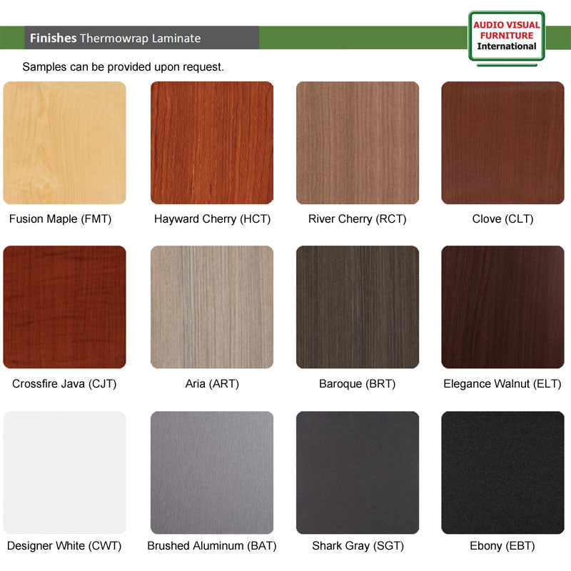 This Audio Visual Furniture Executive Podium (12RU, Various) PDX21 offers a highly resistant thermowrap surface surf(x) and customizable electronic pods, with multiple configuration options to meet any interface requirements. It also features two rear doors with innovative hidden locks for convenient access to equipment from the audience side, as well as a locking keyboard door. The spacious interior includes 12 rack units (10-32 screws) and a tower PC compartment, while the front doors hide away a locking pocket. A slide-out shelf is available for a document camera or projector, and a 120mm quiet cooling fan with 53CFM ensures optimal cooling. This podium also comes equipped with 4" heavy duty casters (2 locking) and arrives fully assembled for convenience.