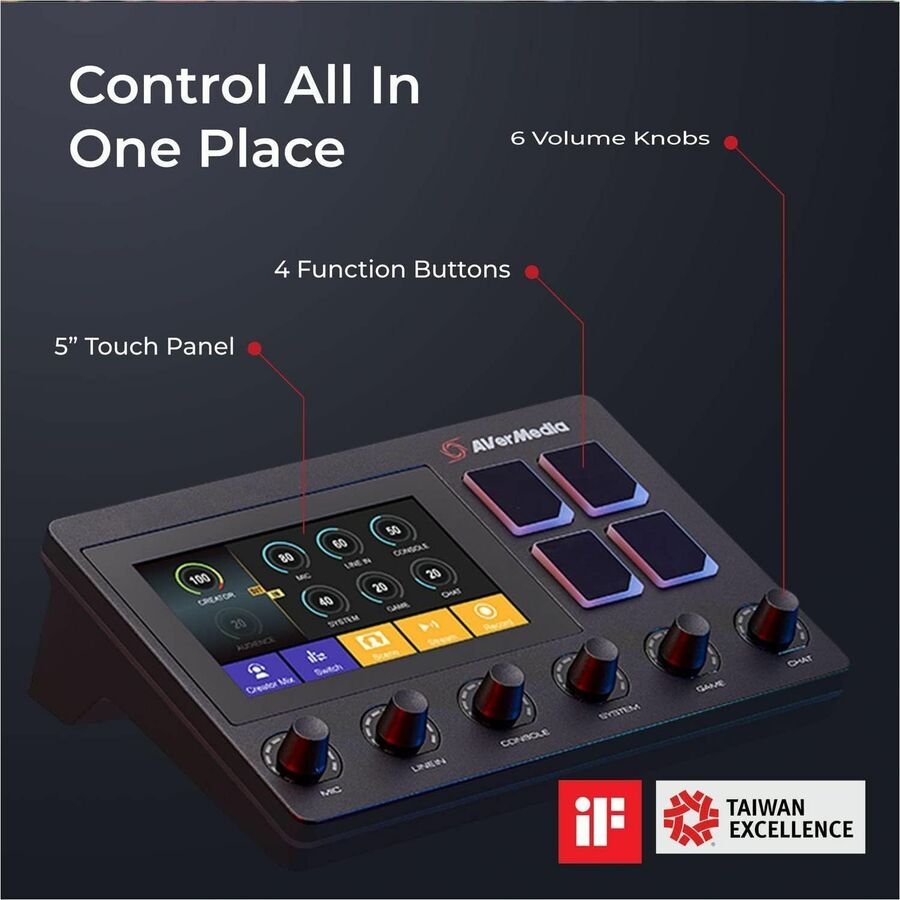 Your voice, alerts, music, even game sound are a huge part of your content. Controlling and monitoring all 6 tracks withe ease and in real-time.