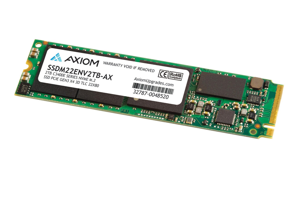 The C3400e Series SSD is Axiom’s fastest NVMe M.2 SSD to date and is designed for high-performance computing (HPC) enthusiasts while providing outstanding endurance and the latest TCG OPAL 2.0 data encryption. It features an ultra-fast PCIe Gen3x4 interface that offers sustained peak read/write speeds of 3400/2950MB per second, outpacing SATA 6Gb/s M.2 by an overwhelming margin. The compact M.2 design offers greater flexibility by not only increasing storage but also saving space. It is available in 120GB and up to 2TB capacities.