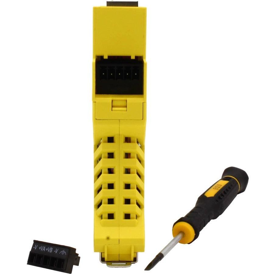 Industrial Compact 5 Port PoE+ Fast Ethernet device. Galvanically Isolated Ethernet Ports capable of 10/100 Mbps. Industrial temperature range of -40°C to +70°C (-40°F to 176°F) and dual input redundant power supply with wide voltage range means it can be powered from USB or on the 24V factory floor. Only 22.5mm wide and 94mm deep. Power terminal is removable with numbered pins for easy wiring. Power consumption is optimised based on the status of the link device. No software required. Send power and data to remote CCTV cameras, PoE telephones, PoE Wifi access points, NVRs, and more