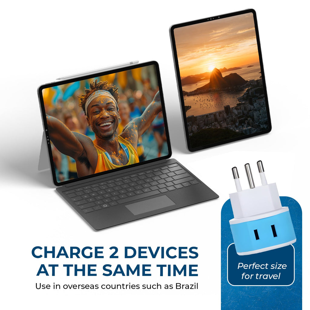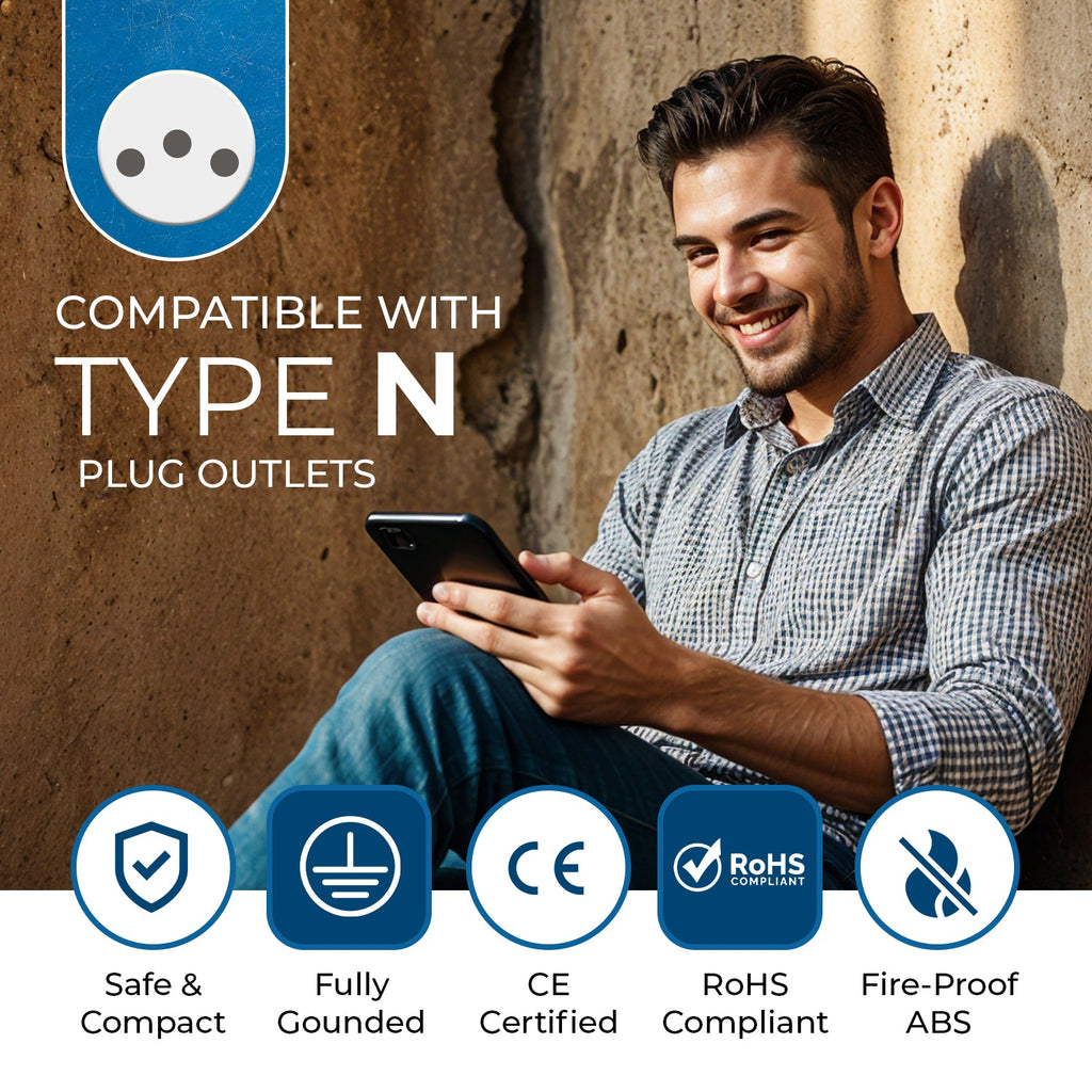 The US-11C is designed in the US and it’s our top choice for travel adapter to use in Type N outlets. It's compatible for use with dual voltage or worldwide voltage devices .It features one socket to connect a N. American 2-prong or a 3-prong power cord to charge your devices.