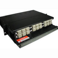 Made from rugged, heavy duty steel, this rugged rackmount enclosure securely houses 6 pre-terminated MTP modules or adapter panels in the 2u configuration. It features a smoked plastic front door, and a steel rear door for easy access; it also incorporates spool rings for securing and storing excess cable lengths with safe bend radius. The top panels can also be removed for additional access, and are equipped with additional rear knockouts for horizontal cabling entrances.