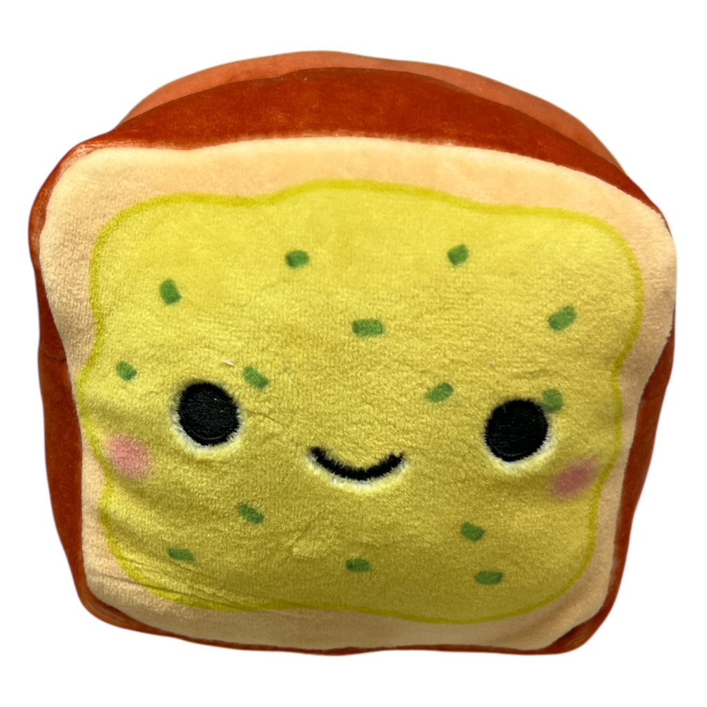 Meet the adorable Rearly Garlicky Reversible Plush, a charming companion that's sure to bring smiles and laughter to your day! Measuring just over 4.5 inches, this delightful plush features a cheerful design resembling a slice of buttery garlic bread, complete with an adorable smiling face that’s just too cute to resist. Made from ultra-soft fabric, it's perfect for snuggles, making it a wonderful addition to your collection of cuddly companions.