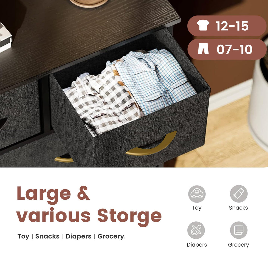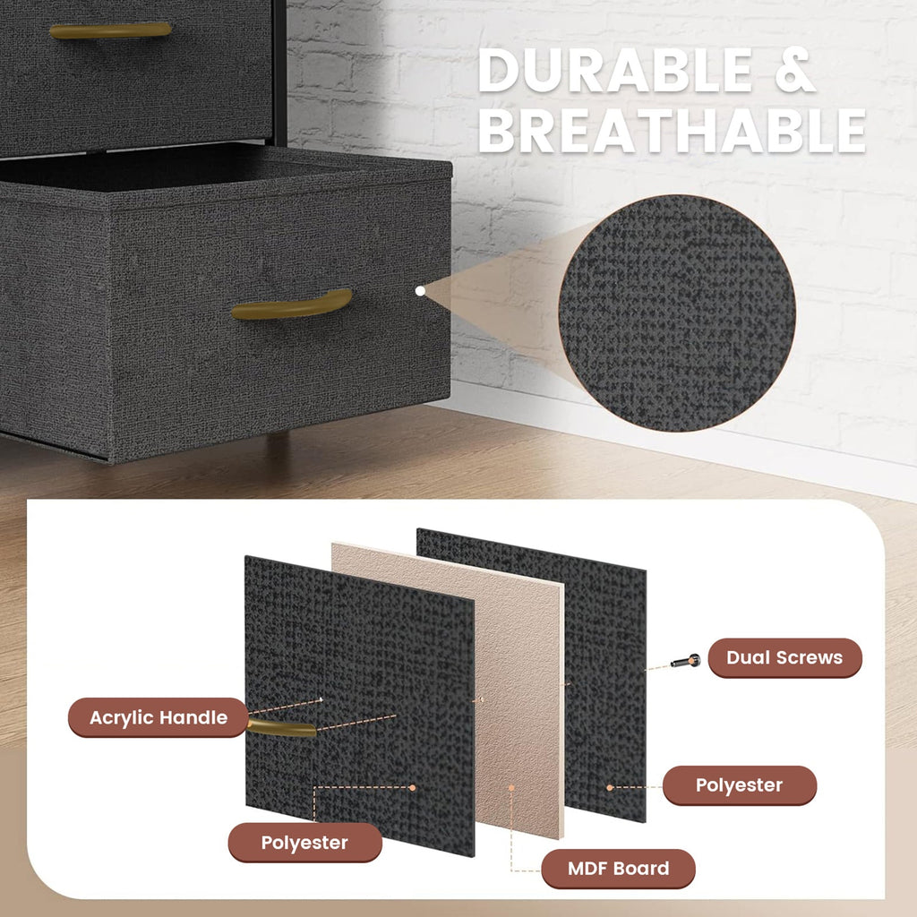 Multi-Functional Design- Whether used as a clothing storage chest, bedside table, or toy organizer in a child's room, this fabric drawer chest showcases excellent versatility. Each drawer is equipped with easy-pull handles for convenient daily use, and the drawer depth is ideal for storing various household items.