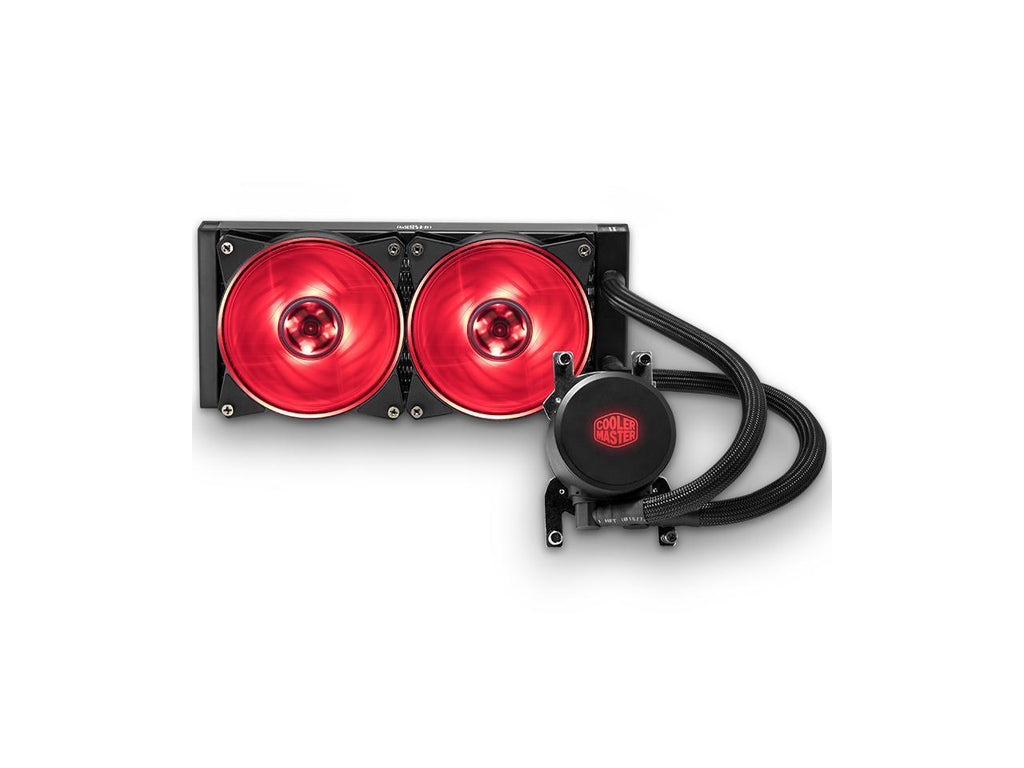 The MasterLiquid ML240 RGB TR4 Edition all-in-one liquid CPU cooler is custom, inside and out. Exclusive for AMD Ryzen TR4 socket which features a larger contact surface area that is specifically tailored for Thread ripper processors. Our low-profile dual chamber pump outperforms its single chamber predecessors in heat transfer. RGB LEDs are installed on both the pump and fans for full color customization that can be controlled through the provided controller. Kink-free, factory-sealed FEP tubing now comes sleeved for a premium look. Screw it in and experience the quiet muscle of liquid cooling without ever worrying about refills or maintenance. Enjoy the work of decades of thermal innovation.