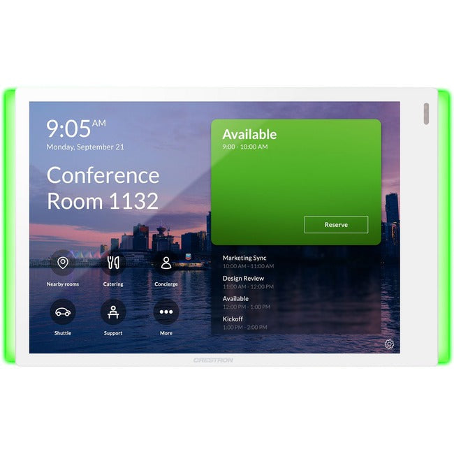 Crestron® TSS-770 series touch screens are designed to enhance and simplify room scheduling across an enterprise. The TSS-1070 installs near a meeting room or huddle space to provide a clear indication of its availability and scheduling and integrates seamlessly with the Microsoft Teams® Panels scheduling application.