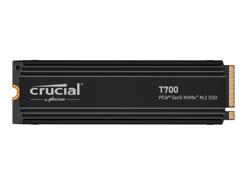 Are you ready to feel the rush of extreme performance? The Crucial T700 PCIe 5.0 NVMe SSD offers speeds of up to 12,400MB/s sequential reads and up to 11,800MB/s sequential writes (up to 1500K IOPS random reads/writes) for faster gaming, video editing, 3D rendering and heavy workload applications. Built with Micron 232-layer TLC NAND and featuring a premium aluminum and nickel-plated copper heatsink that dissipates heat without noisy fans or liquid cooling, the Crucial T700 Gen5 SSD is optimized for performance, takes full advantage of Microsoft DirectStorage, and is backward compatible with Gen3 and Gen4 motherboards. A non-heatsink SKU is also available for use with an integrated motherboard heatsink. With SSD speeds nearly 2x faster than Gen4 in your PC, you'll never look back from the Crucial T700!