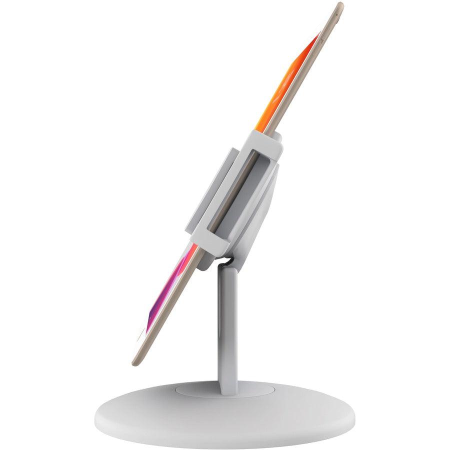 This streamlined tablet display mount gives you quick, easy setups on your counter, table, or desk. The mount’s central base is equipped with no-slip rubber padding, multi-directional angle adjustment, and 360 degree rotation for side to side displays. The tablet holder also rotates 360 degrees to accommodate portrait and landscape orientations