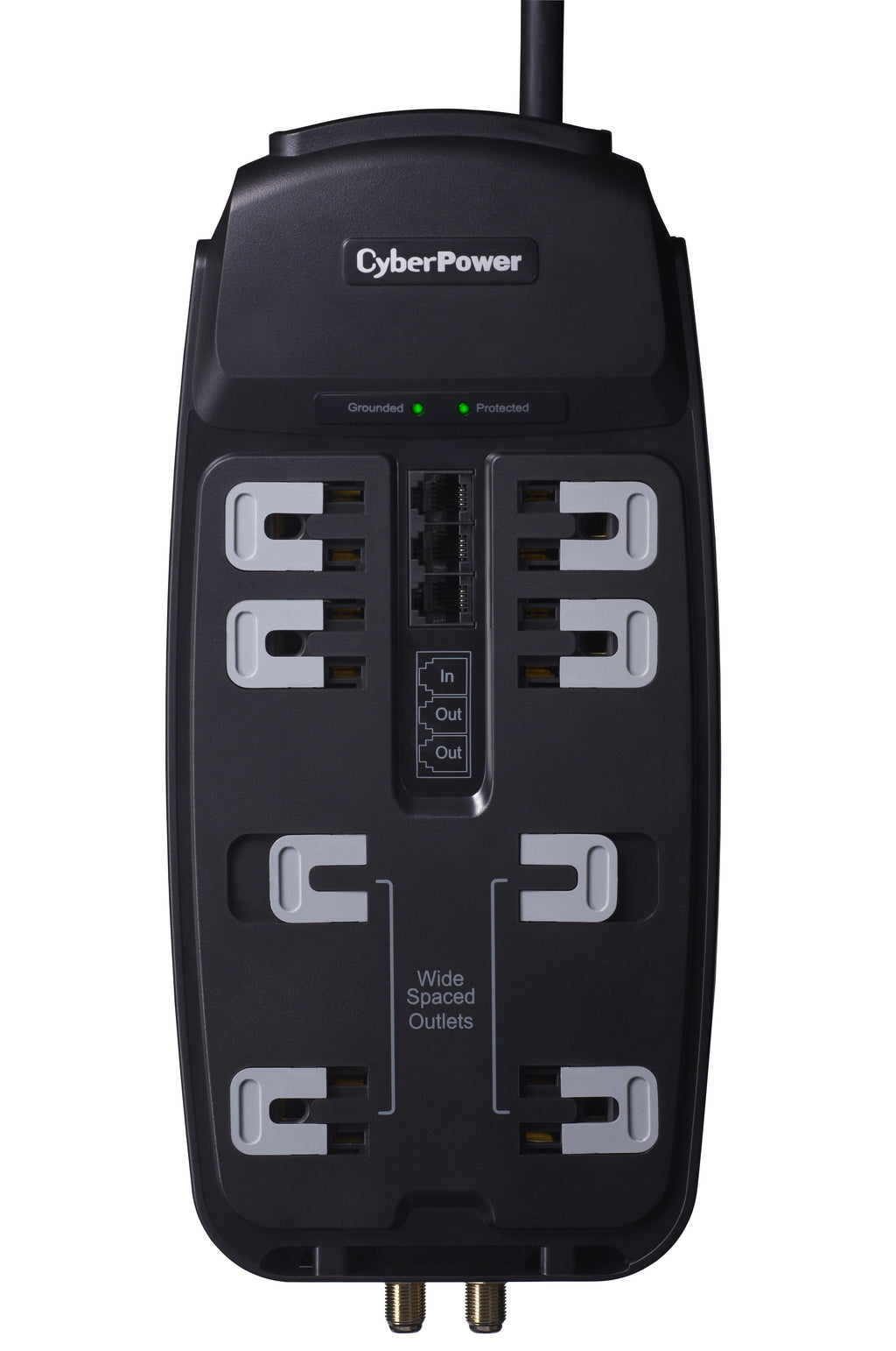 The CyberPower Home Theater Series CSHT808TC Surge Suppressor is ideal for home entertainment and Home Office protection with 2850 joules, 8 outlets, and an 8 FT cord. The surge suppressor provides protection for HDTVs, cable/satellite receivers, personal computers, cable modems, phones/fax/DSL, printers, stereos, and CD/DVD players.