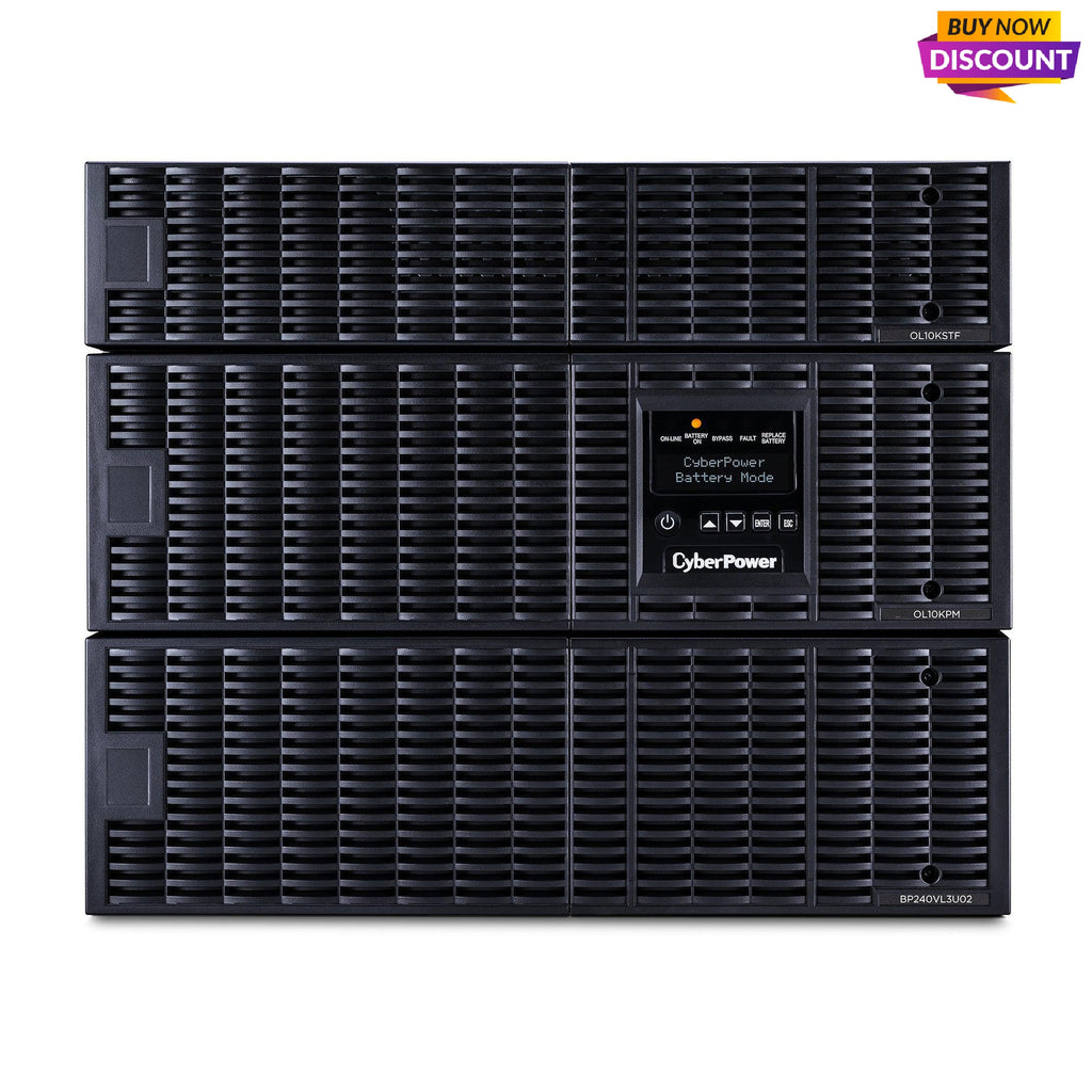 This UPS can use the BP240VL3U01 Extended Battery Module for more runtime. The OL10KRTF comes with a three-year warranty (including batteries) and a $300,000 Connected Equipment Guarantee.