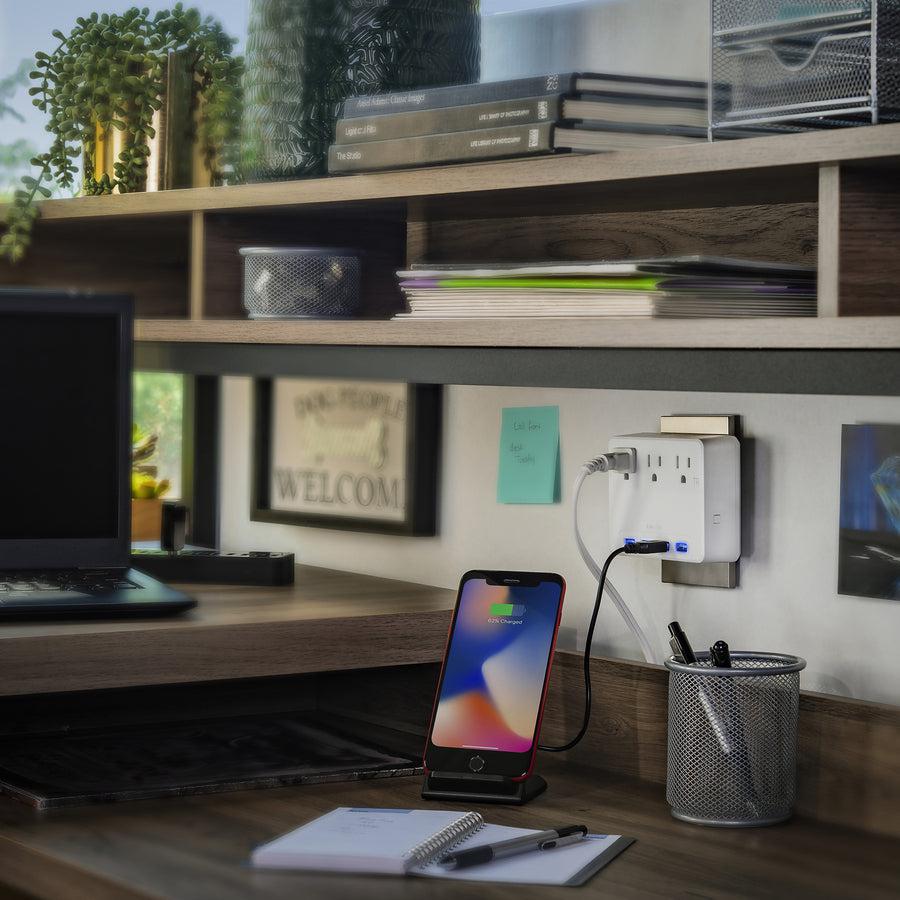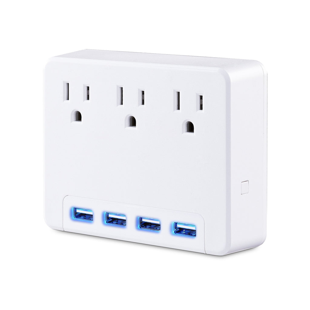The CyberPower P3WU Wall Tap features 3 power-expanding outlets and backlit USB port lighting so it’s easy to find even in low lighting. The glow of the LED takes the frustration out of locating and plugging in personal electronics. The 4 USB charging ports will keep your tablets, smart phones, gaming gear, fitness trackers, and other electronics up and running.