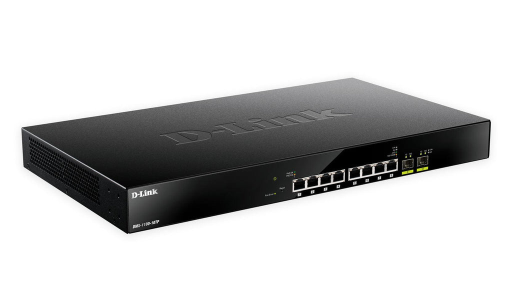 The D-Link DMS-1100 Series 2.5 Gigabit Ethernet Smart Managed Switches are a cost-effective 2.5 Gigabit switch series capable of servicing a range of network needs in any type of business. Featuring eight 2.5 Gigabit access ports and two 10 Gigabit SFP+ uplink ports, these switches are ideal for deploying high-performance 802.11ac Wave 2 access points using 2.5 Gigabit connections, while providing 10 Gigabit wire-speed uplinks for optimal bandwidth when accessing the larger local area network.