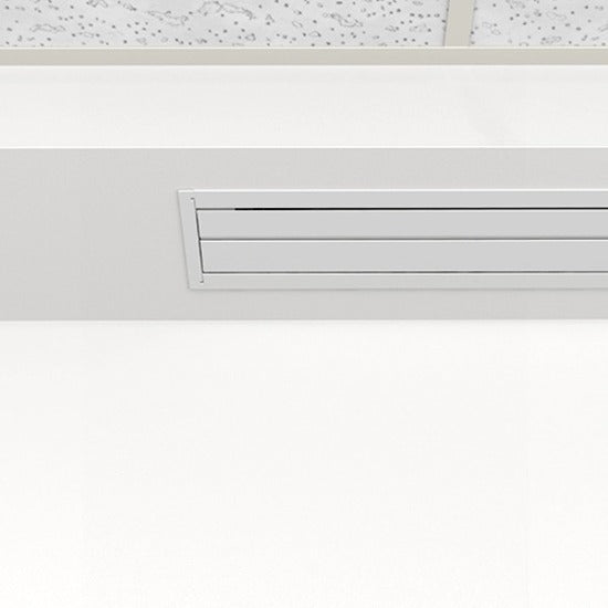 Designed to eliminate the extra step of finishing the screen with trim, the Advantage line of projection screens is designed with ceiling trim already in place. Once the screen is installed, the screen's trim conceals the rough opening eliminating the need to complete additional trim work. Sliding installation brackets make it easy to attach the screen housing to the structure above the drop ceiling. Tensioned screens ensure the smoothest surface possible, and all Deluxe screens feature a closure door that hides the open space and screen in the ceiling, providing a cleaner aesthetic. The Tensioned Advantage® Deluxe Electrol® screen features simple in ceiling installation that can be done in two stages. The screen case can be installed during the rough-in construction stage and the fabric assembly can be completed during the finishing stage.