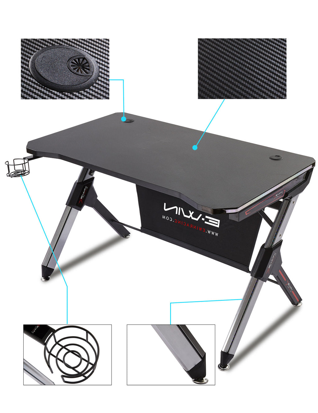 E-WIN Lux Luminis RGB Gaming Desk with Wireless Charging