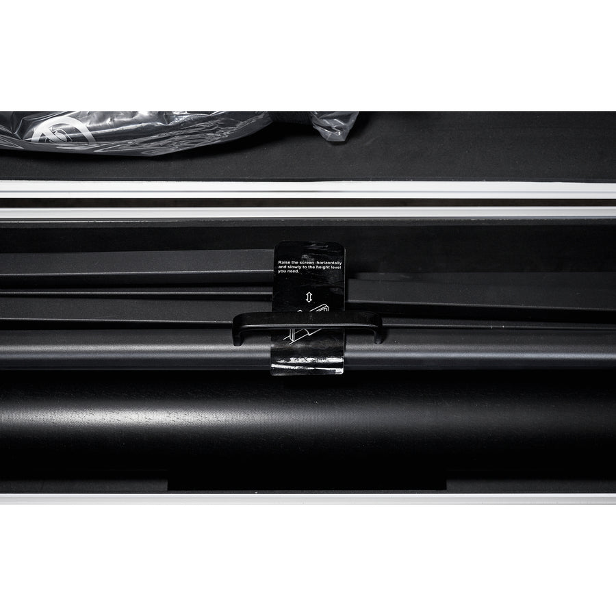 - Screen assembly comes fully integrated in a heavy duty, built-in, travel stage case with wheels, handle, and secure locking latches. Includes elegant drape kit for enhanced aesthetics and professional presentation.