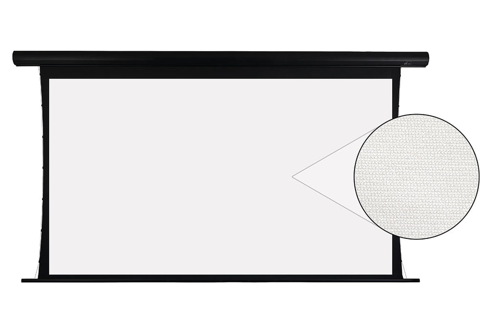 Designed for use with in-wall speakers, the Elite Screens Saker Tab-Tension AcousticPro UHD Series is an electric/motorized projection screen that offers acoustically transparent Ultra High Definition material. With a tight perforated weave, it allows for superior sound performance without compromising picture quality. Standard features include a wireless 5-12 volt trigger, IR/RF remote control, and detachable wall box controller.