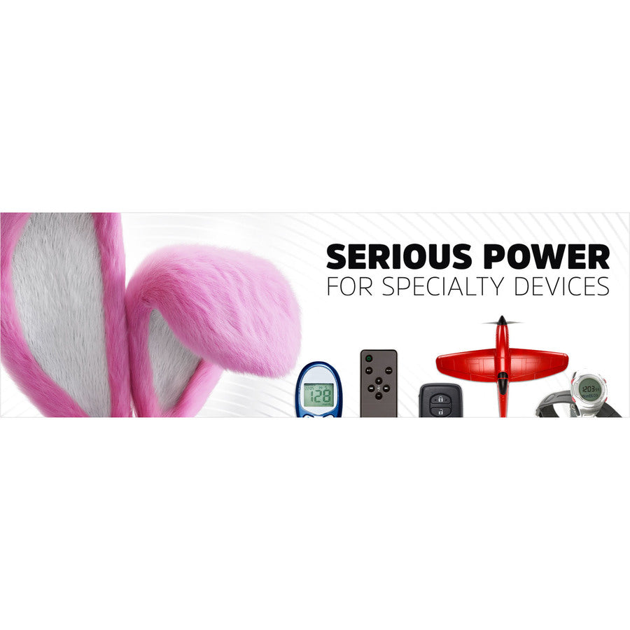 - Delivers long-lasting, dependable performance in specialty devices like heart rate monitors, remotes, keyless entry systems, glucose monitors, toys, and games