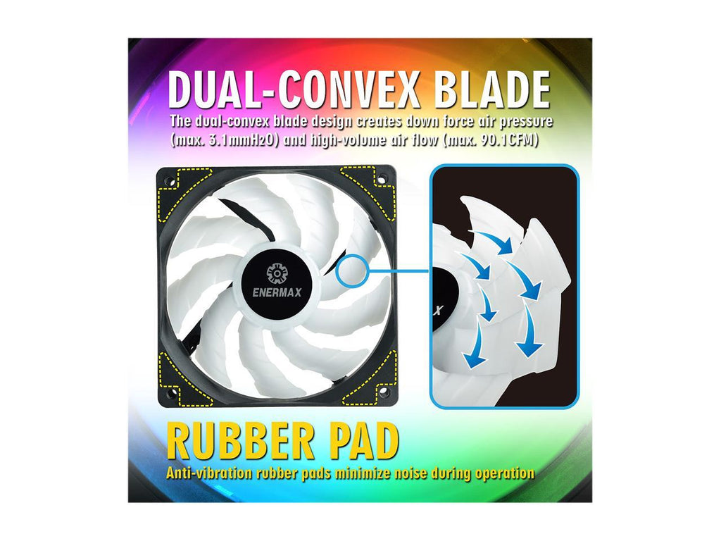 Exclusive dual-convex blade fan creates down-force air pressure (max .1.98mmH2O) and high-volume airflow (max. 72.1CFM).