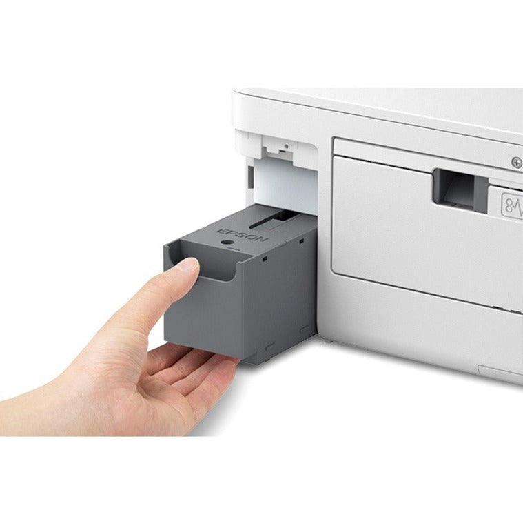 Streamline your businesses workflow and increase efficiency with this WorkForce Pro WF-C4310 Color Printer. Reliable design provides exceptional productivity with an impressive, monthly page volume up to 1,600 pages and print speeds up to 21 ppm (black) and 11 ppm (color). Print legal-size documents and borderless, letter-size photos in resolutions up to 4800 x 2400 dpi. Input tray holds up to 250 sheets for optimal use. PrecisionCore Heat-Free Technology uses lower power consumption. Compact construction is ideal for any setting. Vivid, DURABrite Ultra Inks deliver professional-quality prints. Connect using built-in wireless, Wi-Fi Direct, Ethernet or Bluetooth to print from your mobile device. Wireless connectivity supports innovative, WPA3 wireless security. 2.4" color LCD easily navigates and controls options.